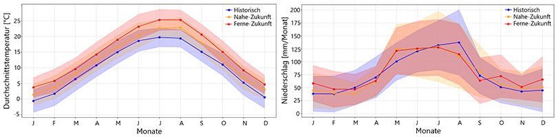 Unsere Analyse für die Region Innsbruck deutet auf einen signifikanten Erwärmungstrend von +2 bis +3 °C bis zur Mitte des Jahrhunderts hin, der unter dem RCP8.5-Szenario bis 2100 möglicherweise +6 °C erreichen könnte. Während die Gesamtsommerniederschlagsmenge voraussichtlich zurückgehen und zu häufigeren Dürren führen wird, wird die Intensität extremer stündlicher Niederschläge voraussichtlich zunehmen. Dies stellt die städtische Infrastruktur vor eine doppelte Herausforderung: zum einen die Bewältigung eines höheren Risikos von Sturzfluten und zum anderen die Bewältigung anhaltender Sommerdürren.